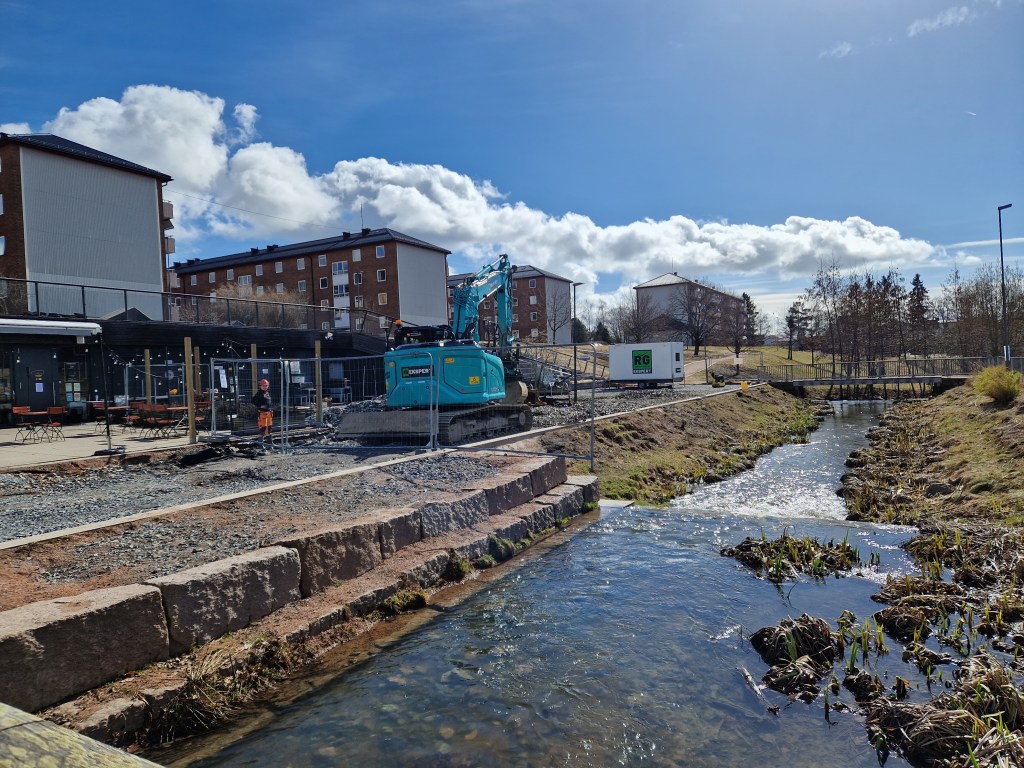 Resten av turen blir en motsatt opplevelse av slik den har vært til nå. Om bekken dominerte og formet Almedalen, er det nå byen som dominerer og former bekken.